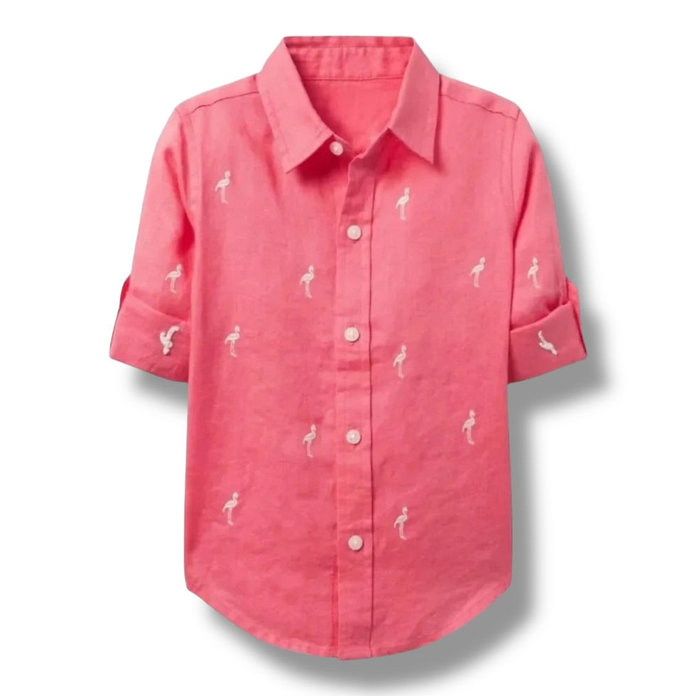 Janie & Jack | Embroidered Linen Roll-Cuff Shirt (4)